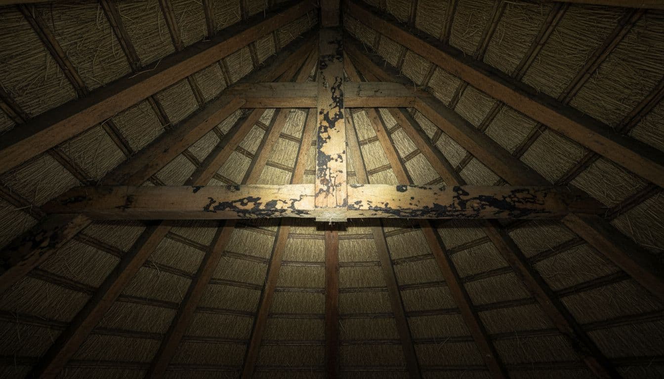 Udvendigt kan et stråtag se fint ud, selv om der er et begyndende problem. Derfor bør du altid tjekke loftet, især efter en vinter med skift mellem frost og tø. Brug lommelygte og bevæg dig roligt rundt. Kig op langs spærene og hen mod gennemføringer, og mærk efter lugt. En muggen eller "kældret" duft er tit første signal.